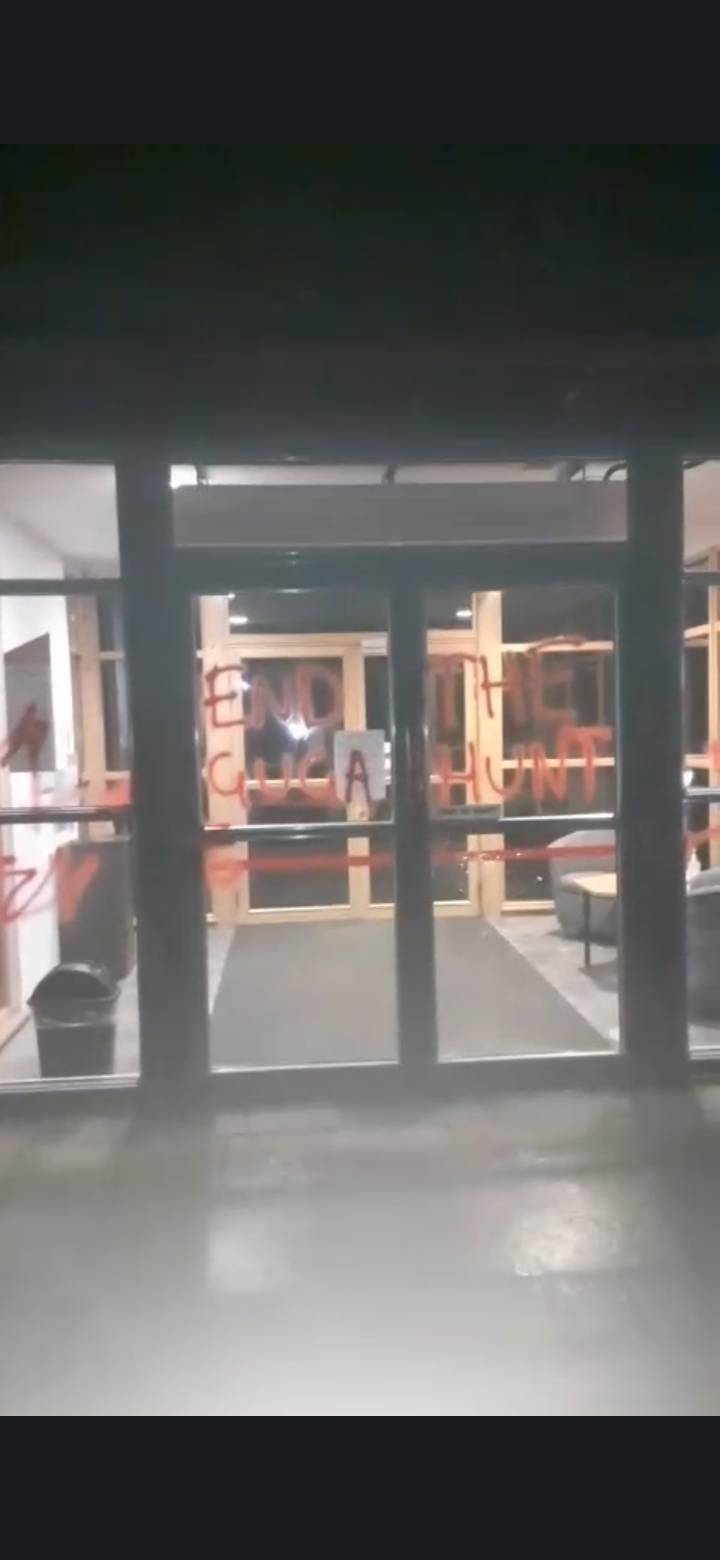 In the early hours of the morning of the 13th of January, their headquarters were targeted with hammers and red spray paint that calls for an end to the gannet/guga hunt.
